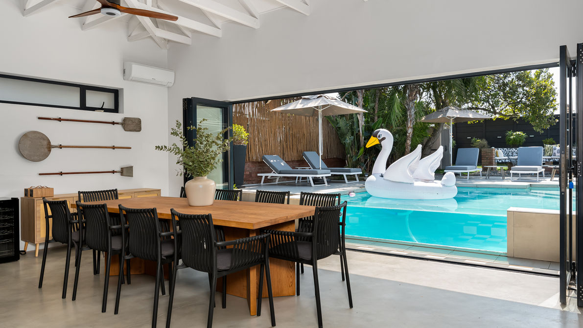 In the middle of Milnerton, Cape Town, a luxurious and spacious home awaits you, offering a total of five bedrooms and four bathrooms. The main house has four bedrooms and three bathrooms, while a charming apartment with another bedroom and private bathroom is located right next to the main house.